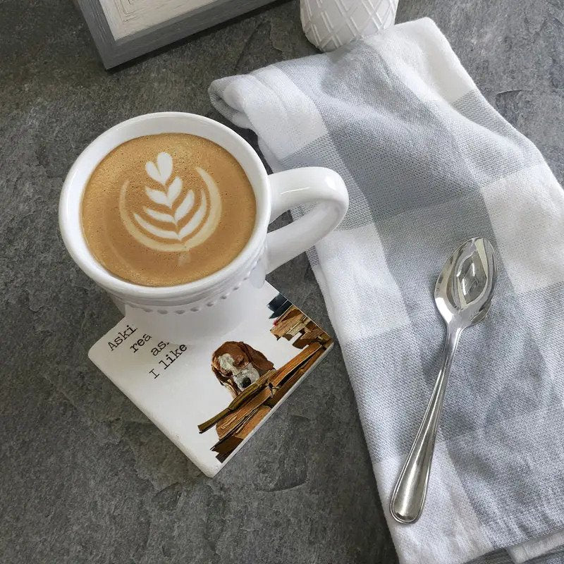 • Coasters are funny and absorbent! Made in America of natural limestone. Drink coasters will protect your table and give a good laugh, because drink stains aren't funny but our coasters are!