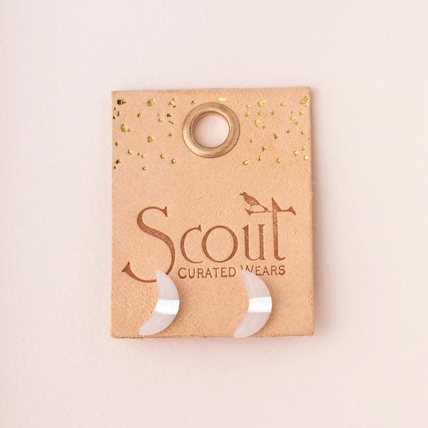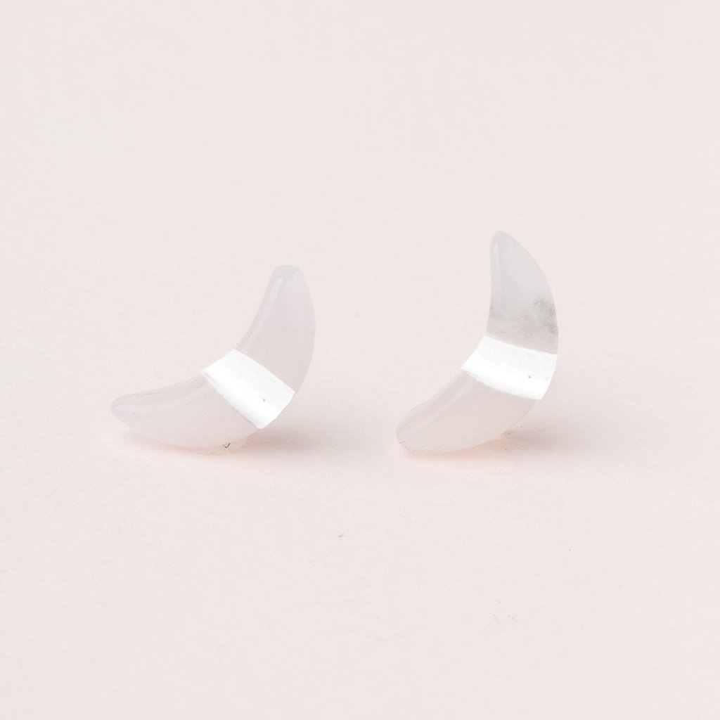Our new line of minimalistic charm to adorn your ears. Lightweight with the perfect amount of color and shape. Whether you want to look polished or down-to-earth is up to you and your mood. - 14K gold band on 1/2'' semi precious gemstone crescent stud. hypoallergenic posts, nickel and cadmium free.