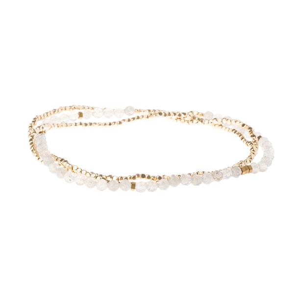Faceted gemstones mix with tiny geometric metal beads to create a subtle and magical piece. Wraps as a bracelet 3 times or wear as a single strand necklace.
