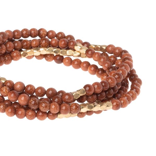 Tap into the energies of the earth. Semi precious gemstones adorn wrist & neckline. Effortlessly converts from bracelet to necklace. Can be wrapped 4-5 times as a bracelet and 1-2 times as a necklace.