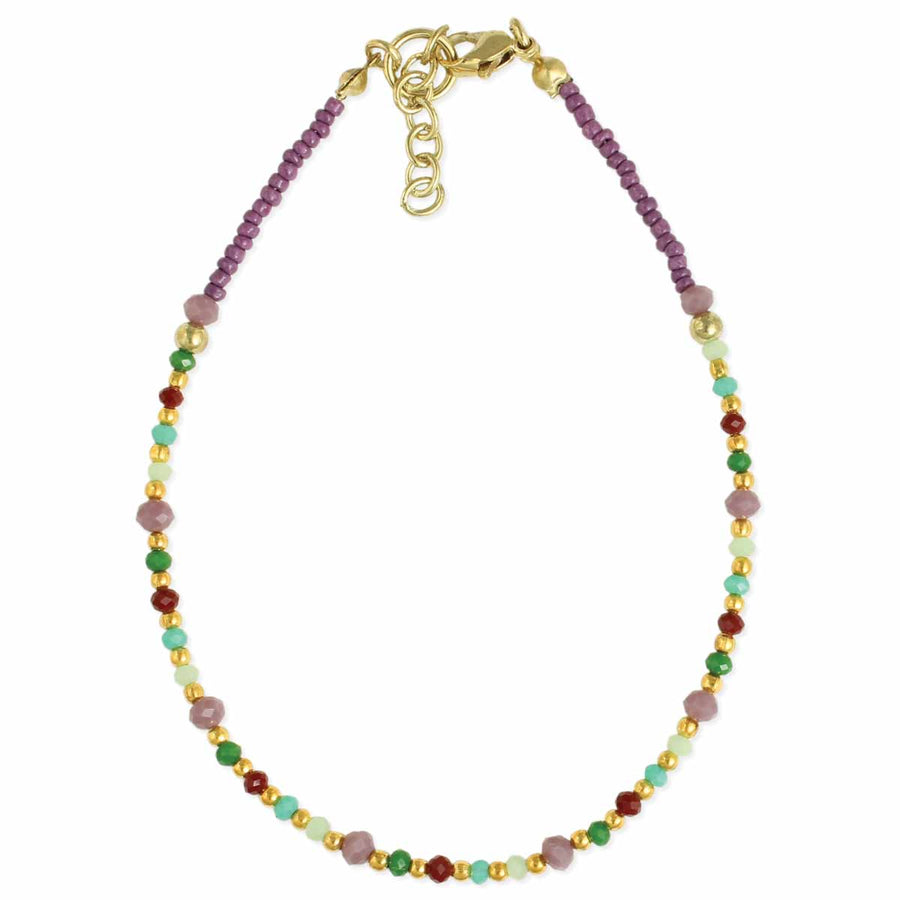 Purple and Gold Multi Beaded Anklet