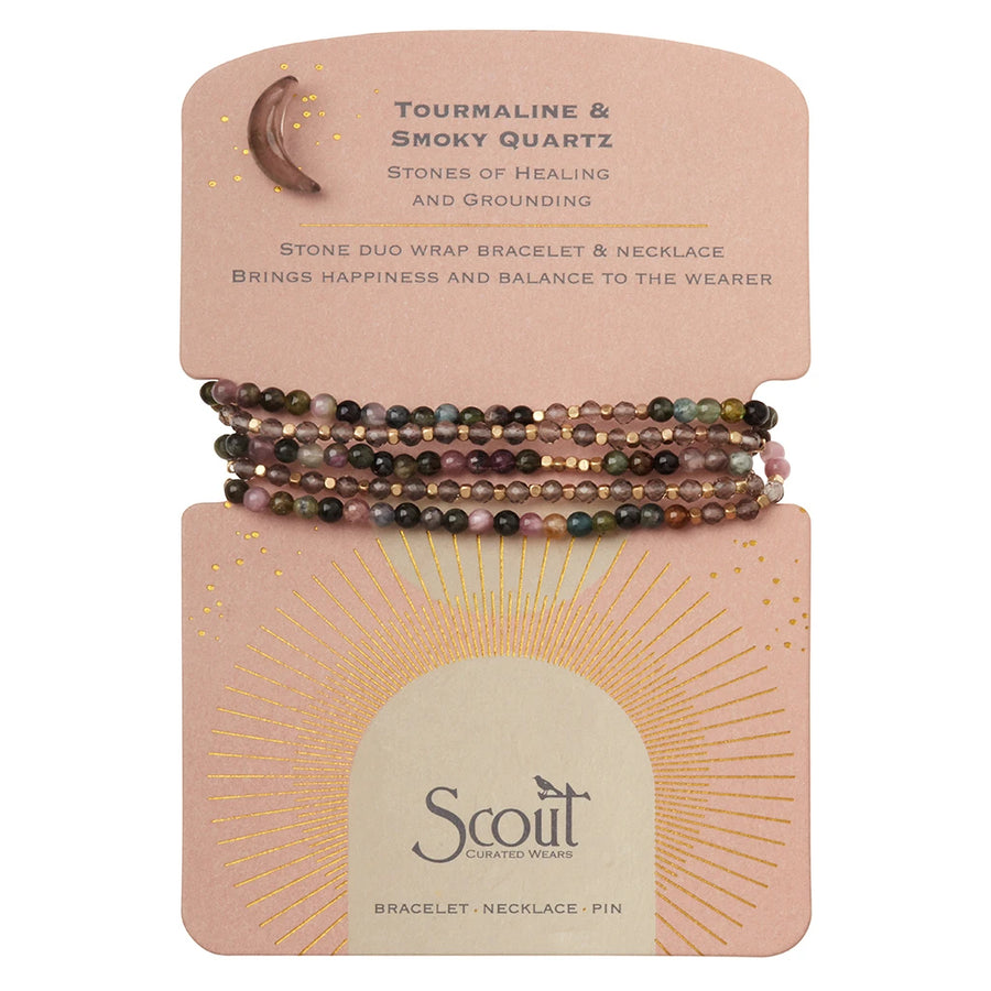 Tourmaline Smoky Quartz Gold Wrap Pin