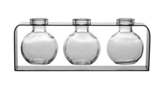 The Triple Rocker Dragonfly Bulrush by ALL FIRED UP is a decorative ceramic switch plate cover featuring dragonfly designs on a multicolored background, crafted in Canada and displayed on a clear stand.