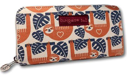 This Bungalow 360 Zipper Wallet Koala showcases a green design highlighted with delightful sloths and leaves. It features a white zipper with an elegant metallic pull, offering practicality while appealing to those who value distinctive designs that support animal causes.