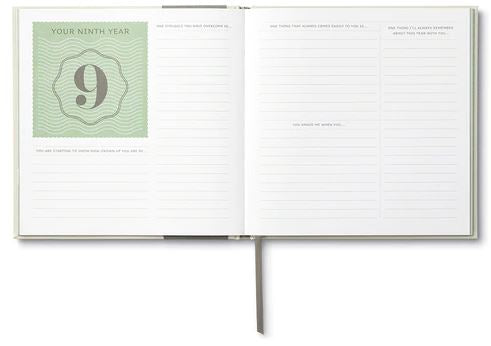 Dreams, wishes, and cherished memories of your child belong in a special place. Capture them all here in this cloth-bound keepsake book, filled with 18 years’ worth of prompts, questions, and space to write a letter each year of their childhood. Present on a graduation or wedding day for a beautifully personal and heartfelt gift.