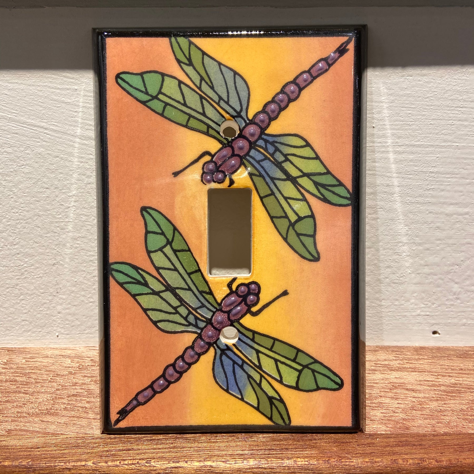 The CreativeCoOp Painted Stoneware Bird, a small hand-painted ceramic figurine in green and pink hues, sits whimsically wide-eyed on moss and assorted pebbles within a metal tray.