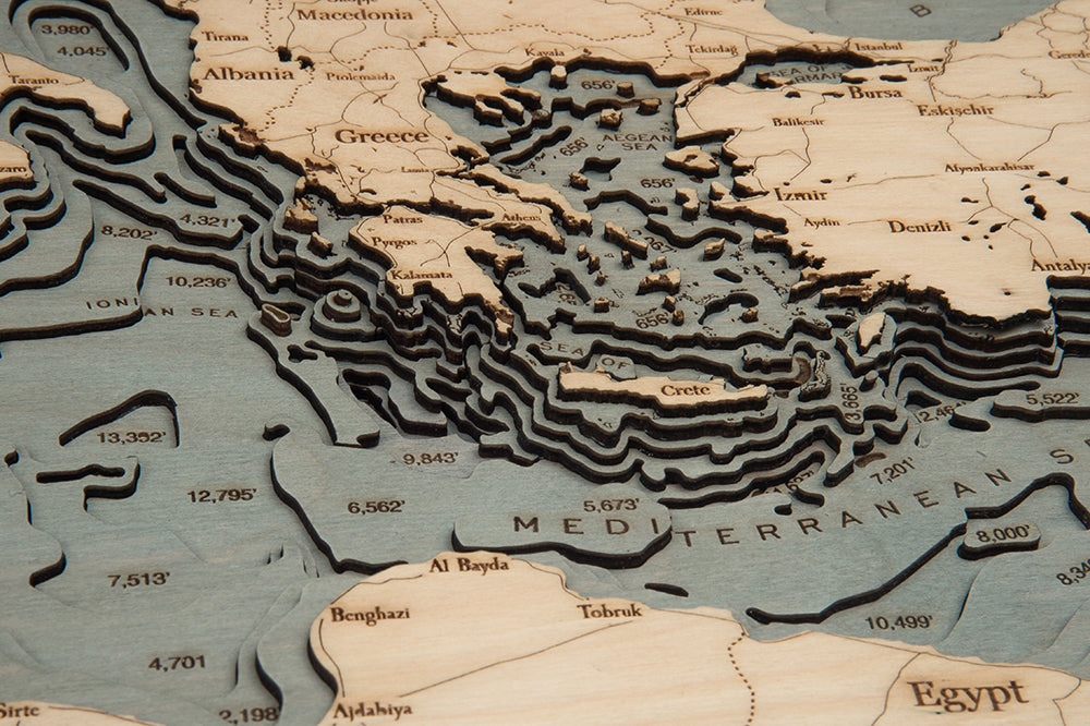 Points of Interest on Mediterranean Sea Wood Map: