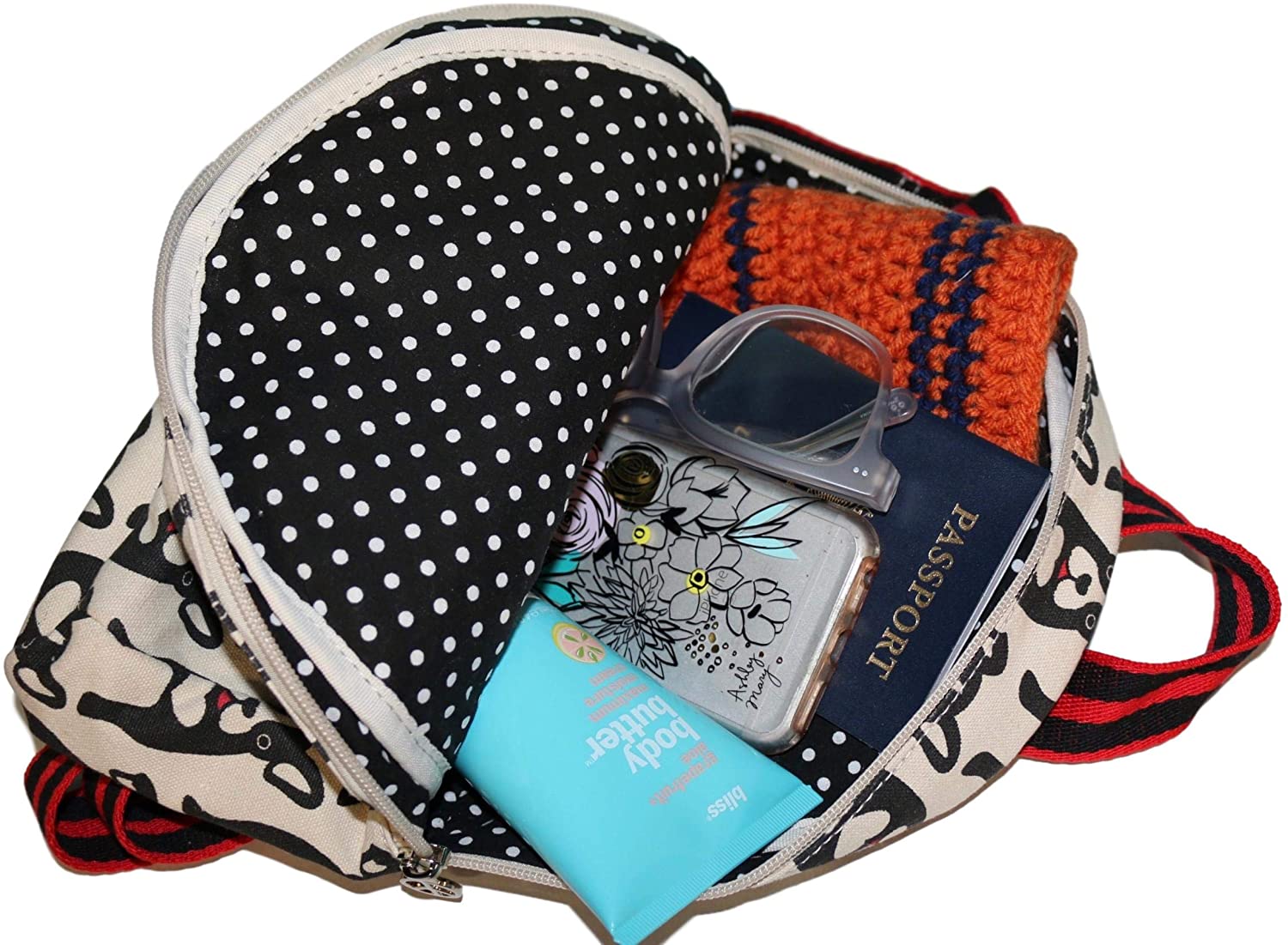 • FEATURES: Outer and inner zip pocket; signature peace sign zip pull.Cute polka dot lining