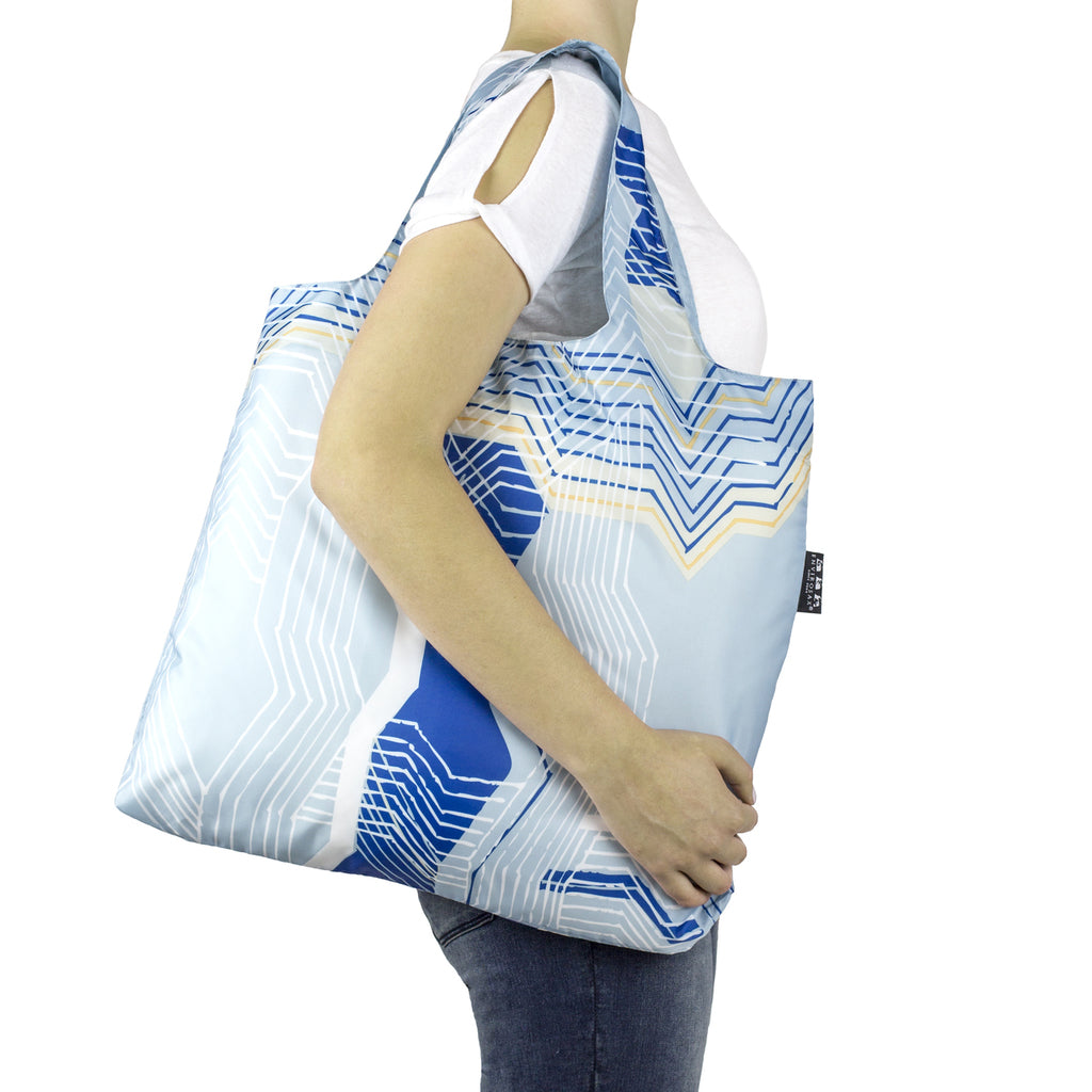 Bag Dimensions (unrolled): 19.5" x 16.5" Bag Dimensions (rolled): 4" x 1.5" Weight Capacity: 44 lbs Bag Weight: 1.4 oz An Envirosax Graphic Series bag is 19.7" by 16.5" and folds up to the size of 4" by 1.5" diameter. It weighs in at just 1.4oz. An Envirosax can quite comfortably hold two to three plastic grocery bags and has been tested to hold at least 44lbs. Envirosax reusable bags are totally safe to carry food.