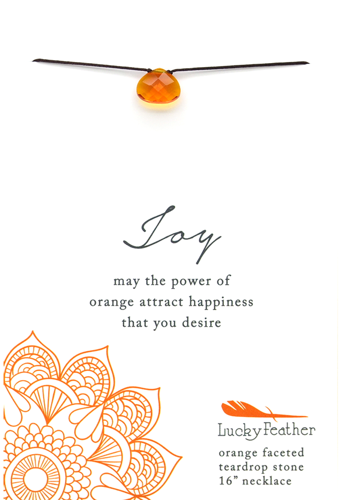 This corded teardrop stone necklace is the perfect way to show the world your power color. The power of orange attracts the happiness you desire, and we bet you'll find just that when wearing this simple yet powerful necklace.