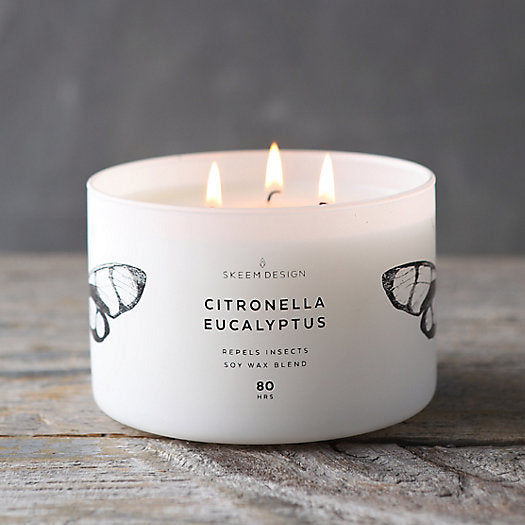 Citronella is a proven, all-natural, insect repellent made from the leaves and stems of the lemongrass plant. It repels insects by masking the smells biting insects are attracted to. Our citronella oils are blended with fine fragrances to smell as good as they look. Once lit, the only bugs you’ll see are the graphic ones silk-screened on these handsome candles. Each one has 3 wicks for the maximum scent throw to keep bugs at bay.