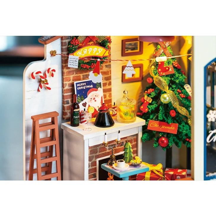 • Whether this is your first 3D dollhouse puzzle or you are looking to expand your already existing craft collection, you’ve come to the right place. This tiny Christmas Patio will keep you busy as you design and create the perfect little space. Kids and adults alike will enjoy our 3D wood puzzle. • To make our rooms look as realistic as possible, we include light fixtures with tiny LED bulbs to illuminate each little room. This vibrant and cozy lighting will add the finishing touch to your room, table, shelf, or showcase. Comes with an instruction book with illustrations to give you an idea of the possibilities. (Battery included.) • This dollhouse kit comes equipped with all the materials and tools you need to recreate furniture and much more to give you a detail-oriented and well-furnished feel to your tiny space. (Glue included)