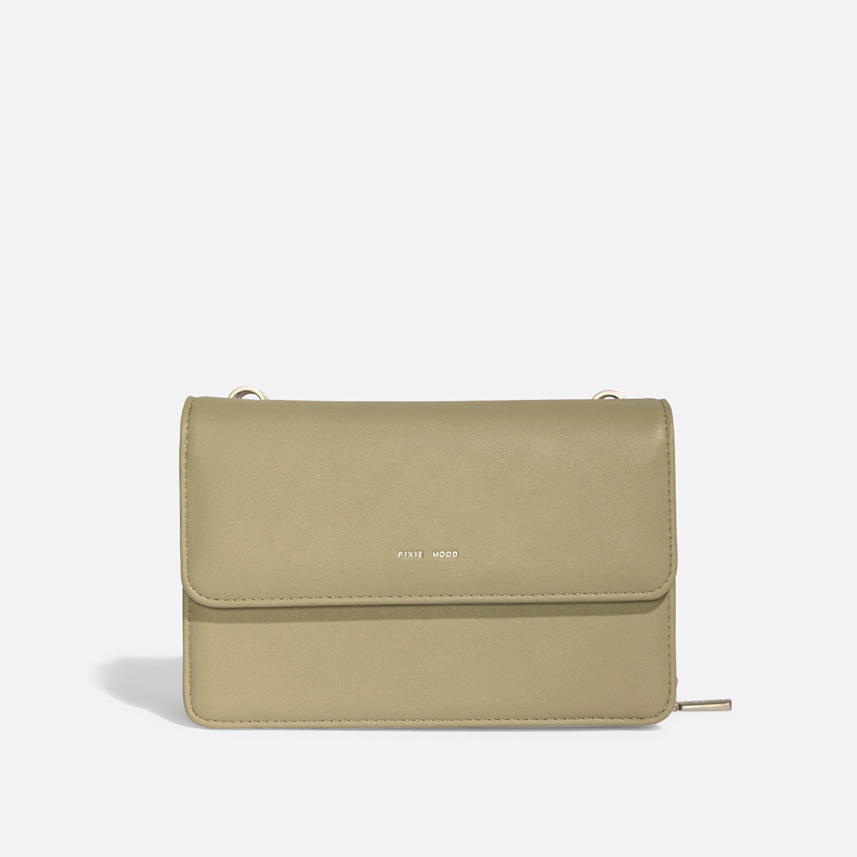 - Detachable wallet portion includes size card slots, zip compartment, phone compartment, bill slot